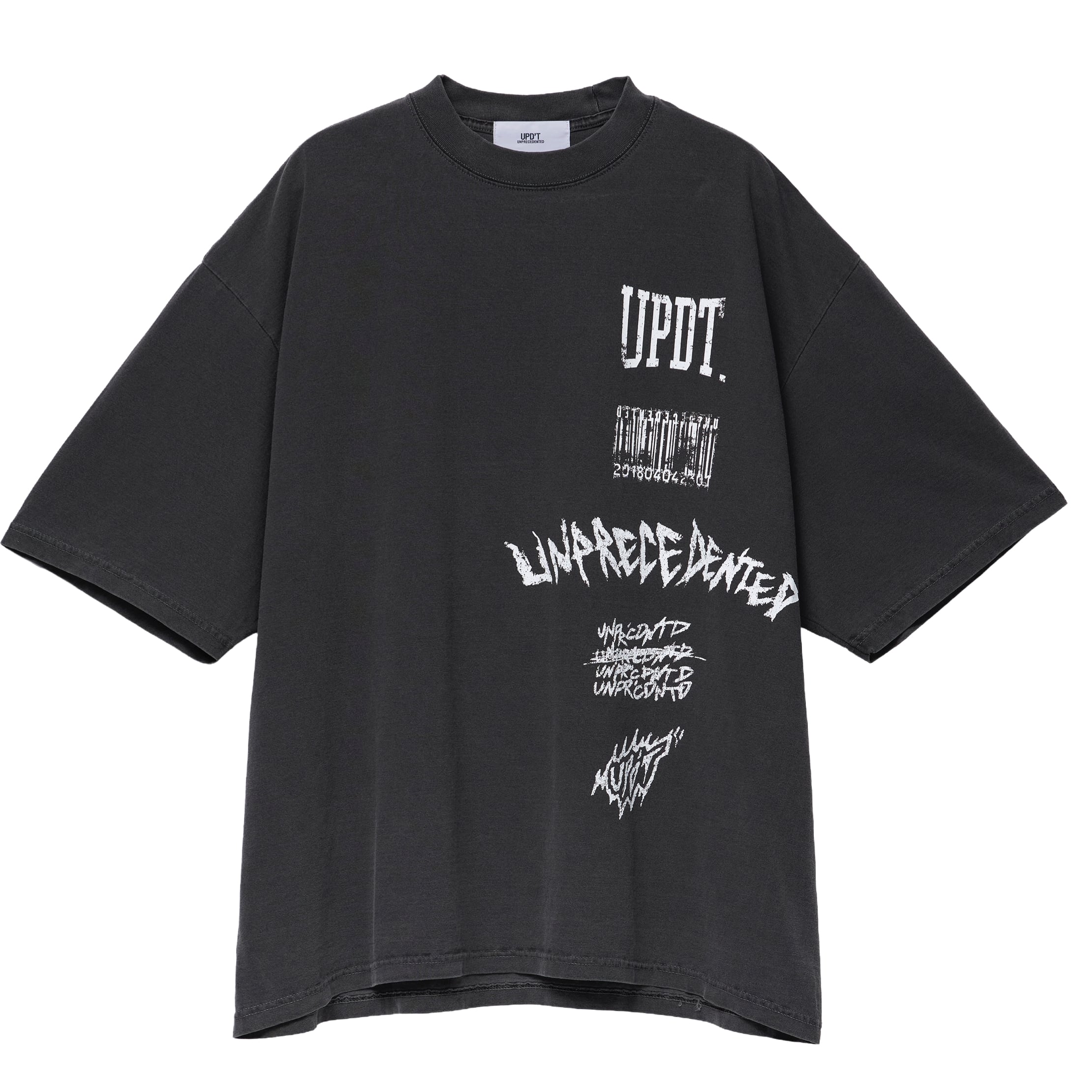 UPD’Tのロゴやバーコードの入ったデザインのTシャツ。